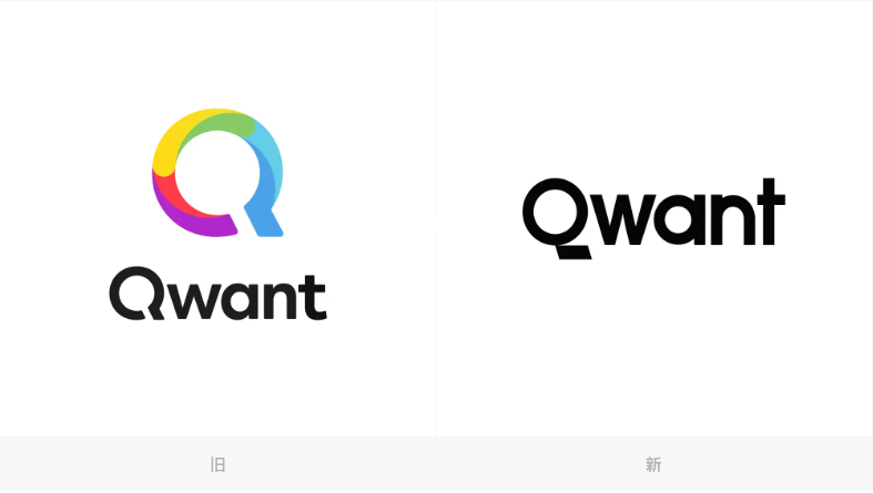 Qwant 原來的LOGO最引人注目的莫過于彩色填充的放大鏡圖標,此次更新之后,放大鏡消失,只保留了簡單的「Qwant」文字部分。新LOGO的首字母「Q」采用了一種筆畫分離的設計手法,將Q的小尾巴變成一條橫線置于圓圈的右下方。
