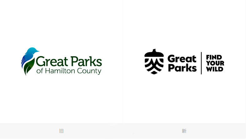 橡子成為漢密爾頓大公園新品牌LOGO的核心元素,就像種下了一個新的種子,象征著不斷發展和成長變化。黑白的橡子圖標果實部分以弧形的線條交錯組合,可以把它解釋為山丘、水波紋和樹冠。標志的右側帶有新的標語「Find Your Wild」。