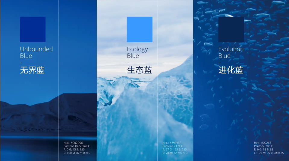 藍色一直以來也是吉利品牌最核心的識別色彩,此次更新中,吉利的藍色并沒有像上圖中列舉的那樣將顏色提亮,而是從一個全新的角度出發,引入了源自孕育生命的海洋以及浩瀚的宇宙星空的全新的品牌色——無界藍(Unbounded Blue)。 顧名思義,無界,沒有界限、不拘束縛。意味著新時代的吉利,將打破傳統思維的束縛,以無邊界的創想探索未來,以科技引領,不斷突破自我,釋放無限潛能。