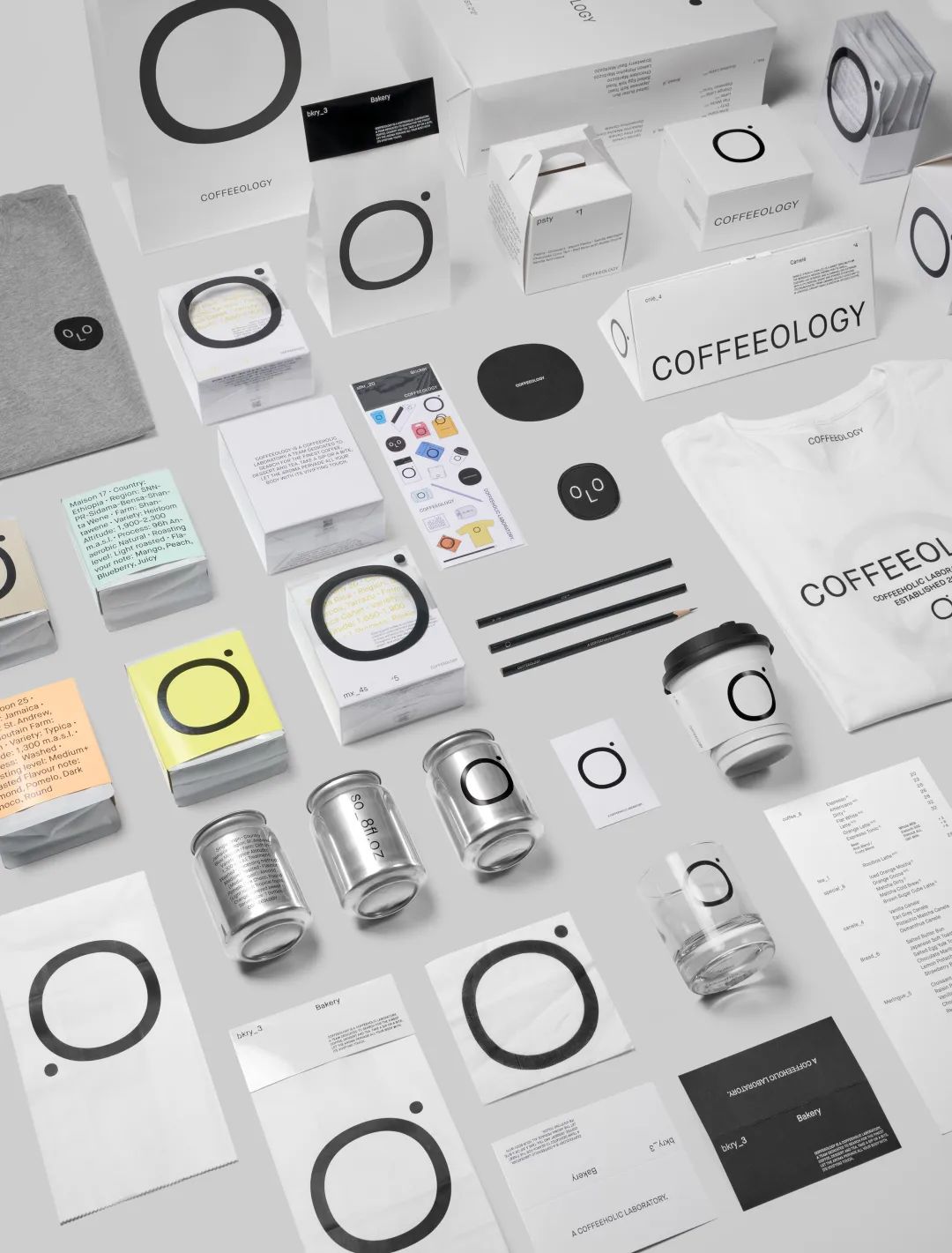 Coffeeology 的商標(biāo)由咖啡杯的形狀轉(zhuǎn)變而來,放大了顧客與品牌之間的關(guān)聯(lián),結(jié)合生動大膽的色彩,形成了代表 2020 年代新一輪精致烘焙浪潮的品牌。