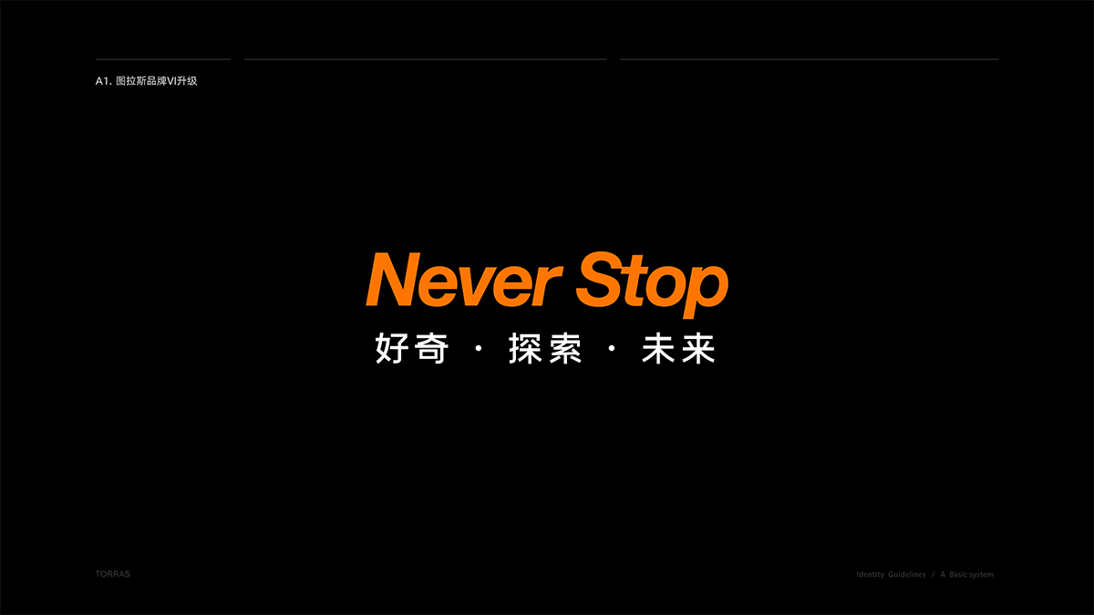 近日,圖拉斯對自己的品牌VI進行全面升級,LOGO、中英文字體以及品牌色彩都有明顯提升。圖拉斯將創立以來一直堅持的“好奇、探索、未來”的品牌理念進行了更全面、更深入的解讀。延伸出「Never Stop」的品牌精神,并融入在本次品牌VI煥新升級中。